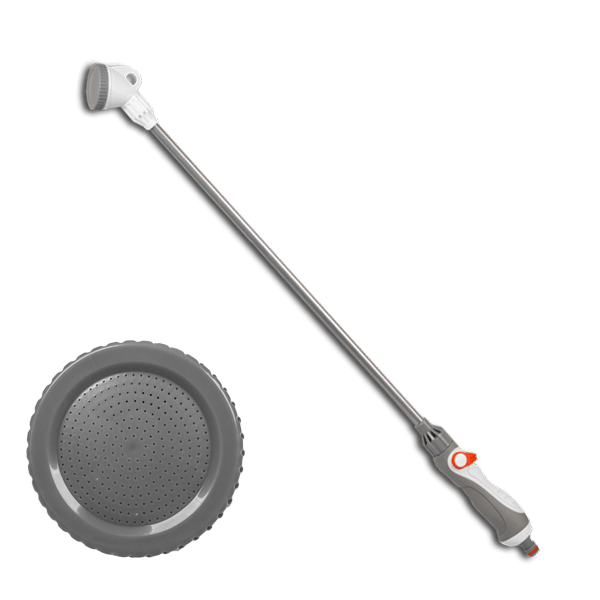 Зрошувач для ручного поливу з довгою штангою. Виготовлений із високоякісного пластику.Оснащений краном для плавного регулювання інтенсивності потоку води. Ручка має м'яке прогумоване покриття для зручності користування.
