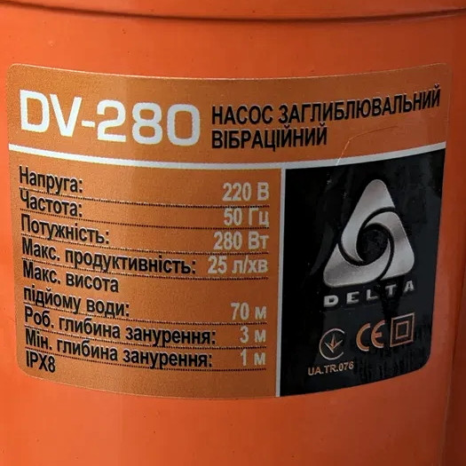 З вібраційним насосом DELTA DV-280 ви отримуєте потужний та ефективний інструмент для надійного водопостачання в будь-яких умовах. Насолоджуйтеся комфортним доступом до чистої води без зайвих турбот!